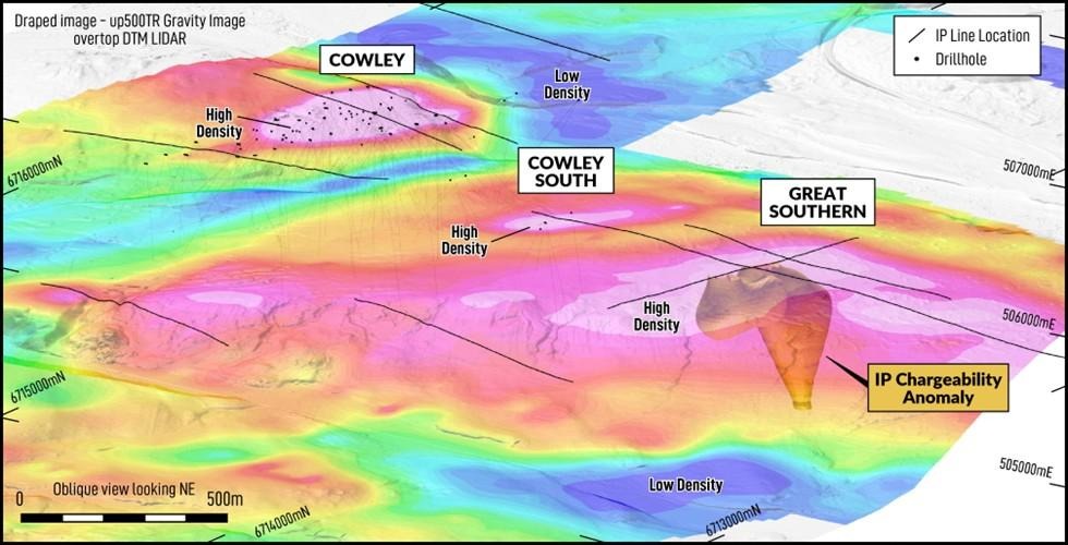At Great Southern, we’re preparing to drill what is a highly compelling, district‑scale target. The gravity and IP anomaly there is not only significantly larger, but also stronger than the Cowley system response to the north. The northern portion alone covers an area approximately 2km by 1.2 km, and we believe this represents real potential for a significant new mineralized system within the broader Cowley corridor”.
